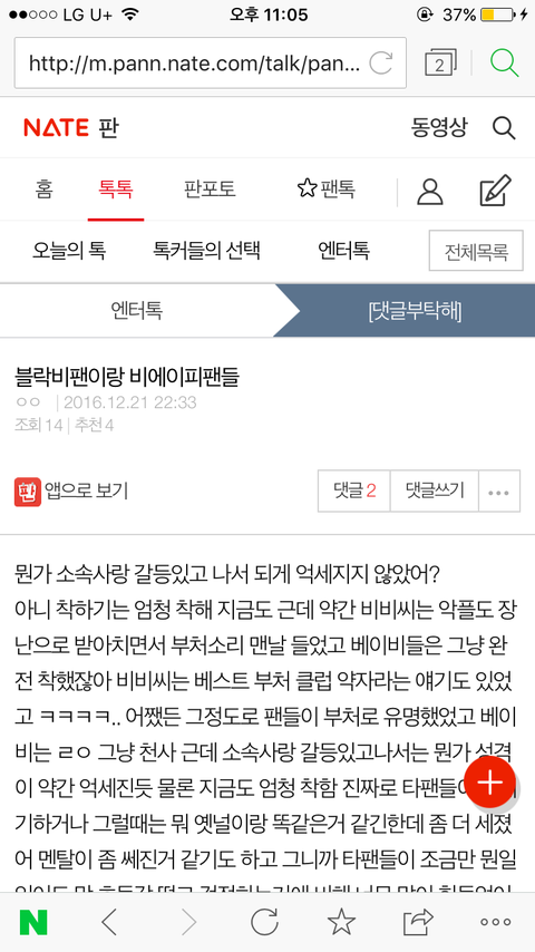 톡선 영향인가 우리 관련글 올라온다 가서 댓글이랑 추천 ㄱㄱ