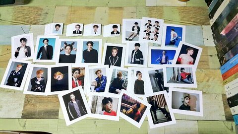 당첨자는 감자만두님 캘린더랑 10*15사이즈 인화사진 20장 민석이 증명사진 16장 포켓사이즈 시우민 사진 2장 >.