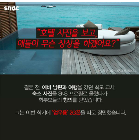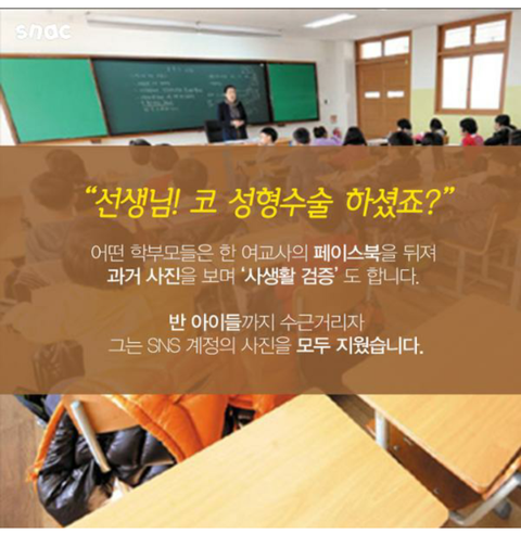 또한 저러한 미친 짓을 하지 않는 정상적이고 바른 학부모들께는 교사 딸내미를 두고 있는 한 사람의 엄마로서 감사하다는 말씀을 드립니다.