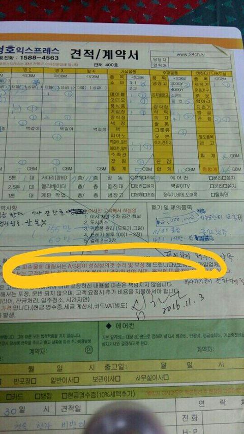 계약서에 파손에 대해서는 책임져준다는 내용도 있지만 전혀~그런게 없고