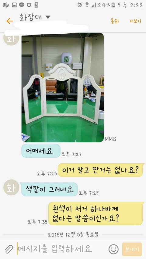 팀장도 알겠다고 죄송하다고 함. 그러고 있는데 방에 들어가보니 화장대도 깨져있었음