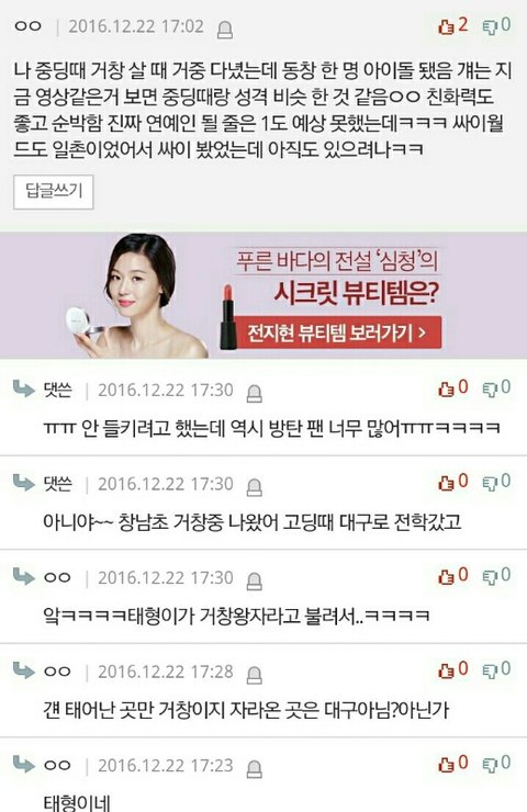 크으 클린한 인성의 소유자 김태형