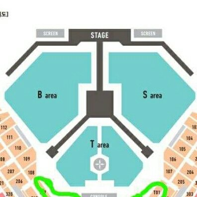 양도라서 일단 자리 정확하게 모르지만 급하니까 받았거든!! S02구역 50열 인데 어디쯤 될까ㅠㅠㅠㅠㅠ 알려쥬ㅠㅠㅠㅠㅠ 아래에 초록색은 무시해죠...줍줍한거라 가리려고 잘랐건만 안잘렸...ㅎ