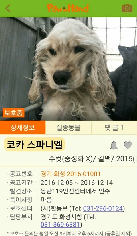 이아이 구조해달라는 구조자의 요청으로 급하게 저희단체에서 구조하였고 현재 갈곳이 없어 대전 동물병원에서 호텔링을 맡겨둔 상태입니다.