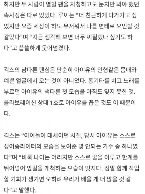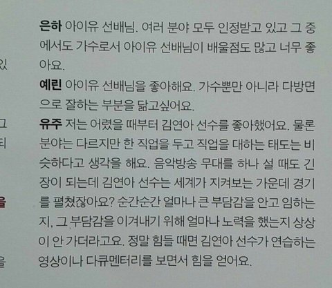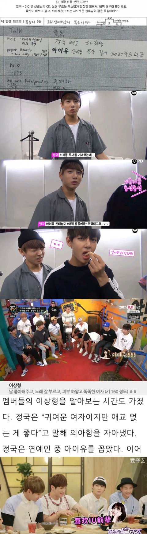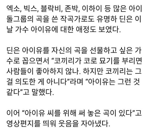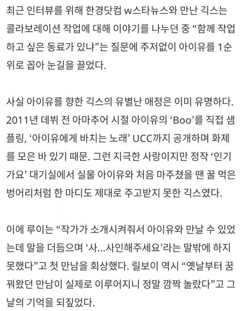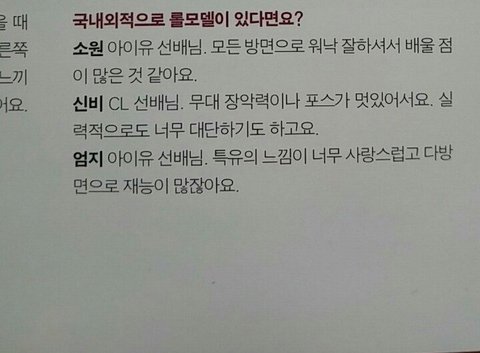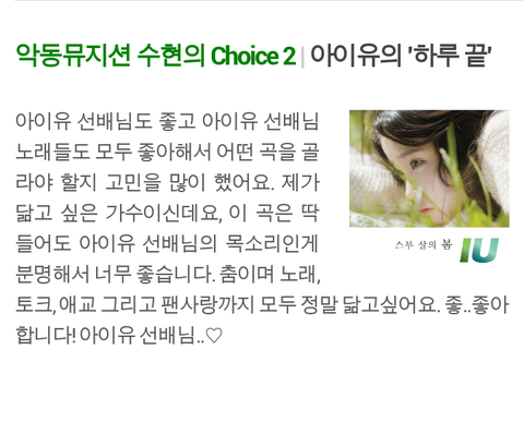좋아하는 가수로 아이유를 지목함.