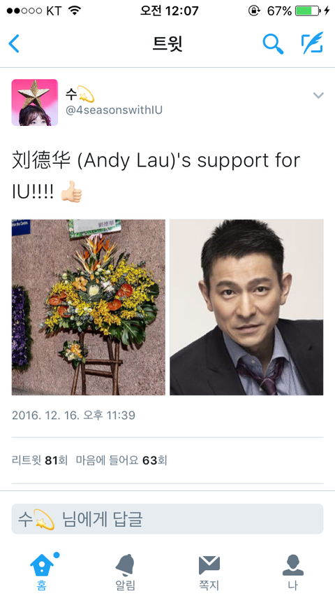 ++ 워후 베톡 ㅋㅋㅋㅋ감사합니다ㅠㅠㅠㅠ 근데 본문에 기재된 인물들은 전부 일반인이 아니라 연예인이고요 송승헌분만 제외하고선 전부 2015 2016 자료들입니다 지코분과 정국분은 옛날 것까지 합친거에요 특히나 유덕화분은 아이유 올해 12월에 한 홍콩콘서트에 화환을 보낸거에요 그리고 수지분도 아이유도 커리어 대단하니까 서로 싸우지들 맙시다~