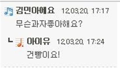 "저는 사실 아이유 팬입니다. 유애나입니다. 6년째 유애나 입니다. 네, 저는 아이유앨범을 굉장히 많이 갖고 있고요, 그리고 아이유 노래를 정말 다 압니다. 수록곡까지 다 압니다. 아트레이아, 뭐, 꿈빛파티시엘... 아무거나 얘기 해보십시오 정말 다 압니다 가사까지. "