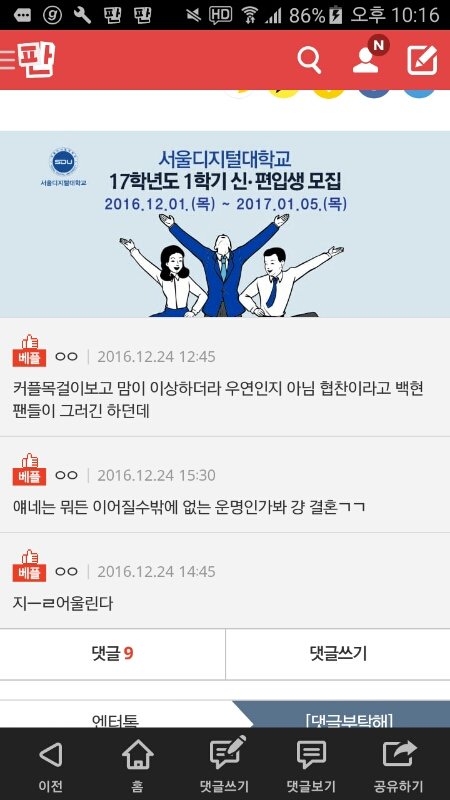 댓글조작에 톡선까지 간것봐ㅋㅋㅌㅋㅋ개병신년