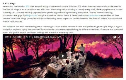 윙즈로 계속 빌보드에서 기록세우더니 빌보드가 칭찬한것봐ㅋㅋㅋ