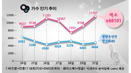 엑소는 이 기간 6만8,101건의 버즈량으로... 혼란스러운 시국에도 단단한 팬덤을 보여줬다.