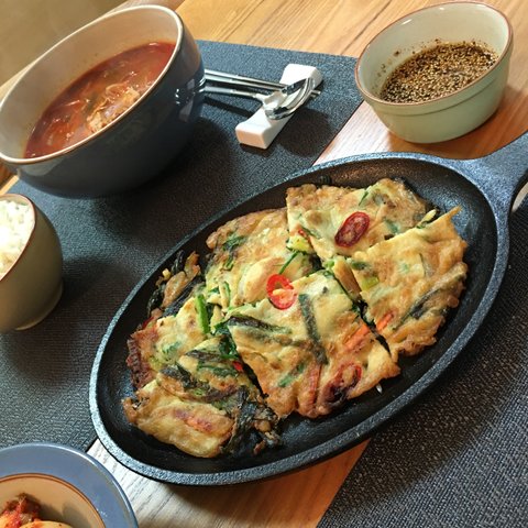 남은 전 소에 청양고추 썰어넣어서 매콤버전으로!