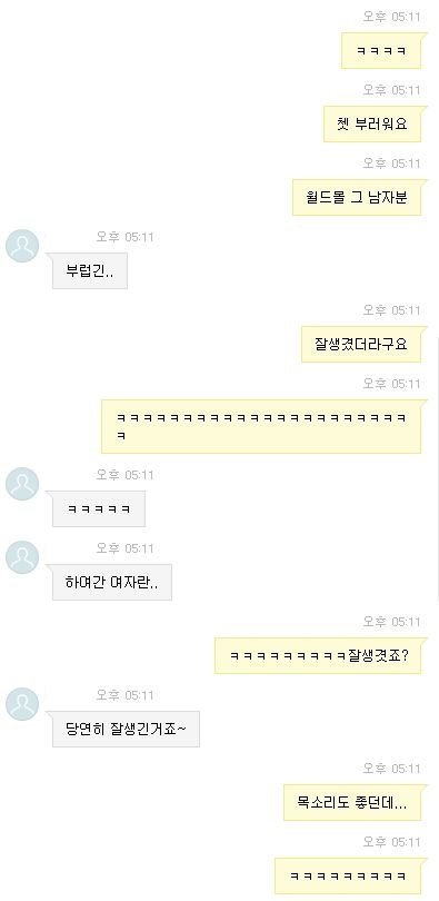 글로 쓰는것 보다는 실제로 대화내용을 보여드리는것이 여러분들의 객관적인 반응을관찰하기에 적합한것 같아서 이미지를 첨부합니다.