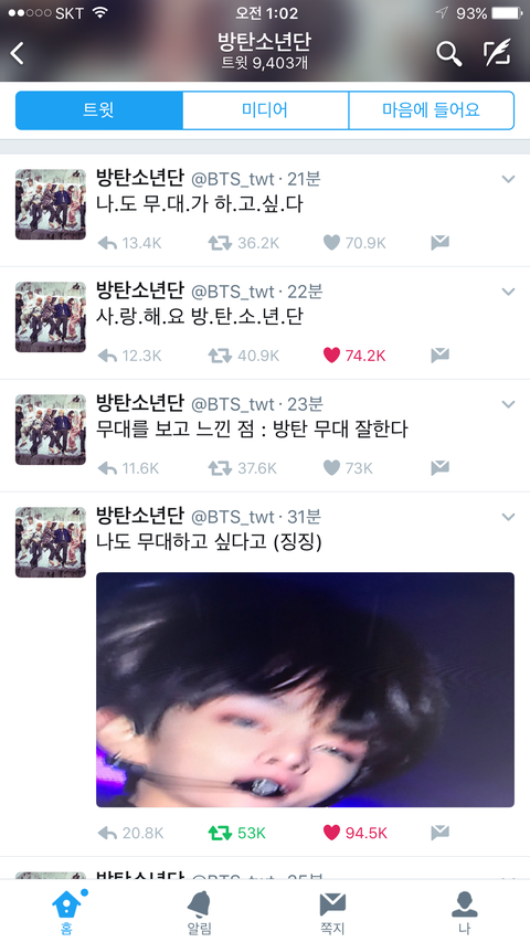 엑소 무대 끝나고 칼같이 올라온 방탄 트윗.jpg