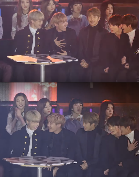 ㅠㅠㅠ 애들 오늘 완전 하이텐션일듯.. 그렇게 좋아하는 빅뱅선배님들 옆에 앉고 ㅠㅠ