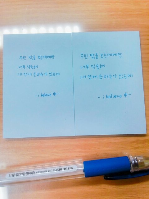어제 노래듣다가 가사 너무 예뻐서 한번 써봤는데 계속 써서 책상에 붙여놓으려고!