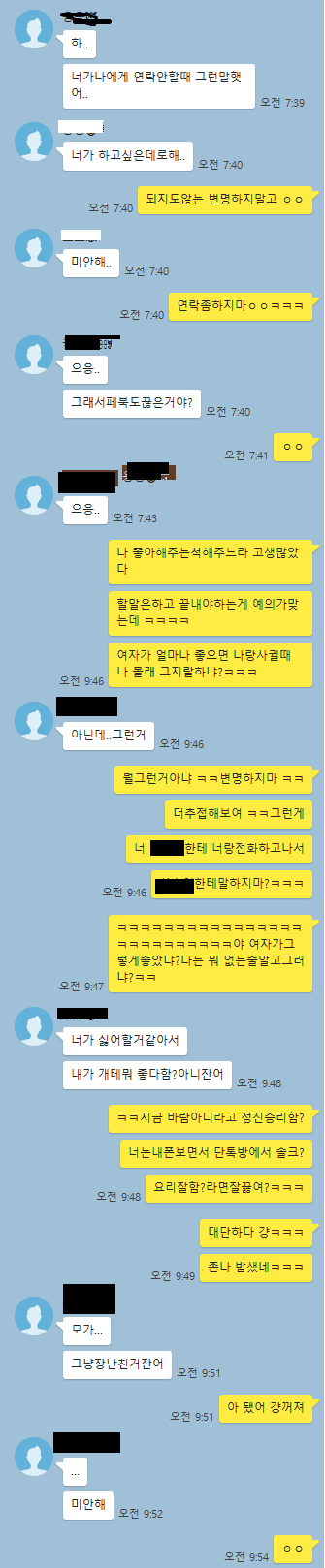 남친이 미안하다, 장난이였다 너밖에없는거 알지않ㅎ냐 등등 개소리시전함.