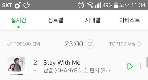 찬열X펀치 도깨비 OST "Stay with Me"라는 곡으로 멜론 2위까지도 올라가면서 꾸준히 상위권에 있었음에 불구하고도 어느 커뮤에서도 언급한적 없는....