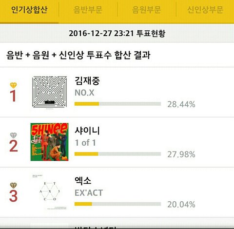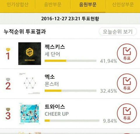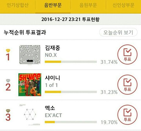우리 지금 투표도 이 모양 이 꼴인데 대상은 커녕 지금 이 상도 못 받는데 가능할거라고 생각하니? 아니 정말 어이없어 왜 투표를 안 하는거야..ㅋㅋ 심각해 진짜 왜 심각성을 모르니 애들한테 상 안 주고 싶어? 그냥 애들 앉아만 있으면 좋겠니? 아직 조금 기간 남았으니까 투표 좀 하자 점점 격차 벌어지고 있고 우리 3위야~^^