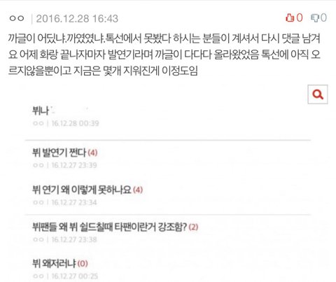 + 댓글 확인이 늦었네 어제 엔터톡보면서 너무 의아하다싶게 뷔까글이 올라오길래 쓴글이었어 너무 섣부른 판단 아닌가 하고! 댓글에 사진 있길래 추가해..! 까인거 못봤다는사람들이 많길래ㅜㅠㅠ