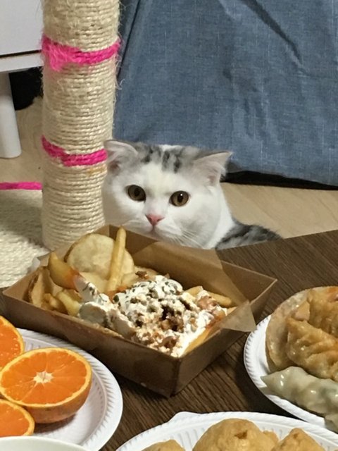 파티음식 아련하게 쳐다보는중 (그래도 안줌 절대안되)