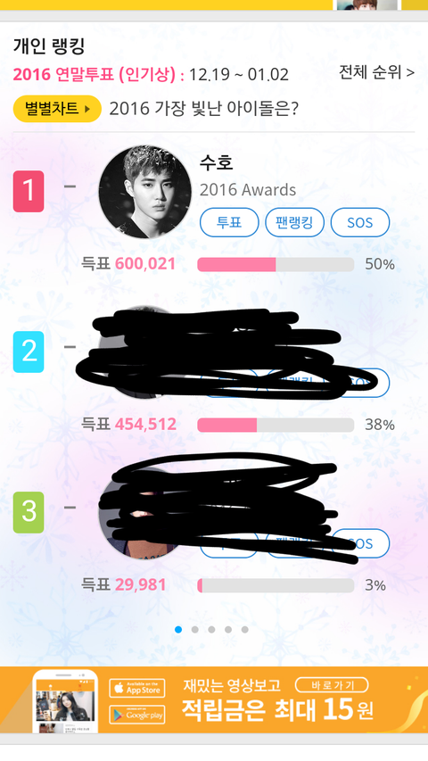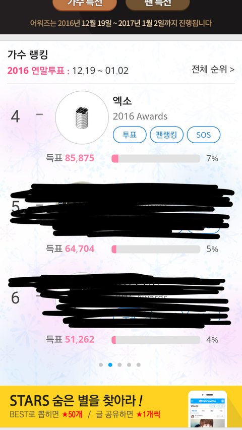 엑소 지금 4위임 1등하면 엑소엘이름으로 엑소한테 상준다함