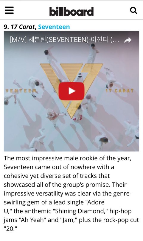 미니1집 17carat이 best kpop albums 2015 9위였어ㅠ