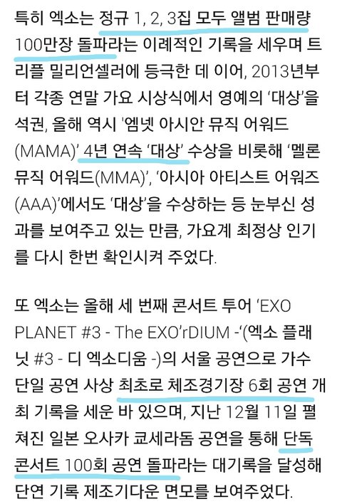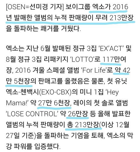 엑소 2016년 음판량 213만장임ㄷㄷ