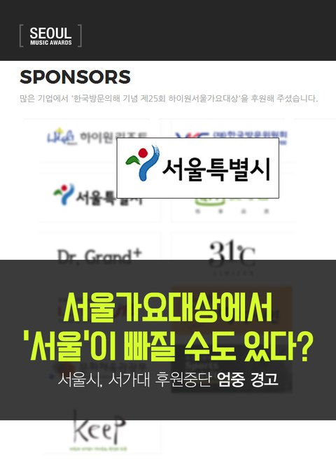 그리고 현재, 열정페이를 내세운 (서울)가요대상은 실제로 서울시 후원을 철회당했습니다.