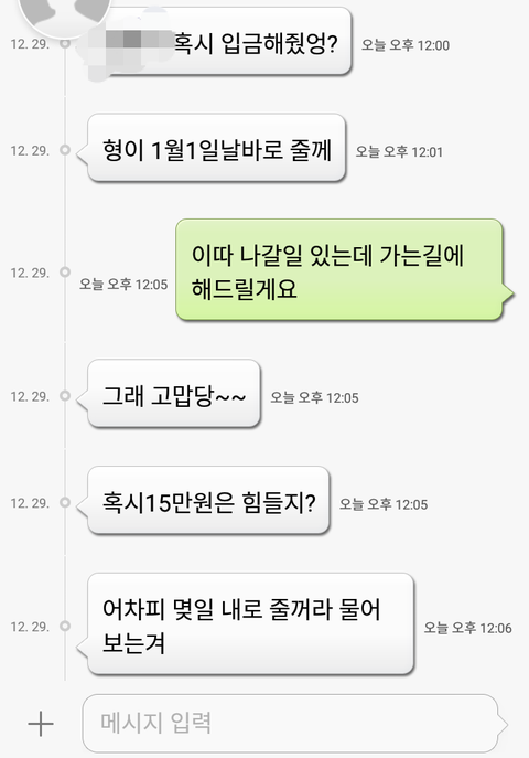 인사 간단히하고 아내가 아프댔나? 40만원만 빌려달라네요..