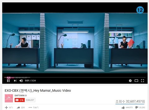 첸백시 헤이마마 뮤비 3260만 돌파!!!