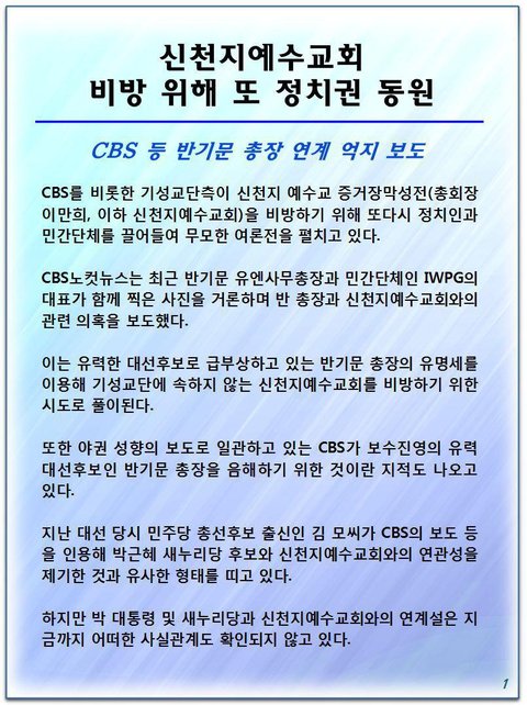 신천지예수교회 비방 위해 또 정치권 동원