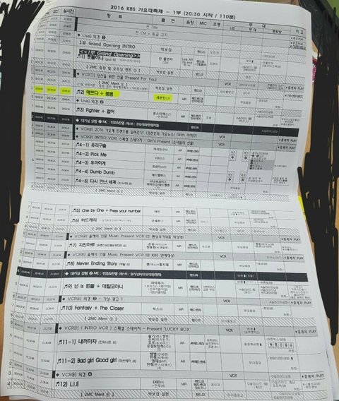 가요대축제 큐시트!!((