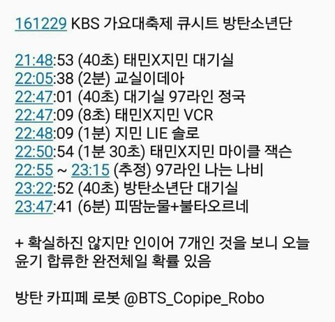 오늘 대미쳤어ㅠㅠㅠㅠㅠㅠㅠ무대 적어도 5번정도 나오고 대기실 상황 3번씩이나나오뮤ㅠㅠㅠkbs사랑합니다ㅏㅠㅠㅠㅠㅠ화랑도 나오고 애들 무대도 몇번씩이나 잡아주고...학..카메라만 발캠이아니길