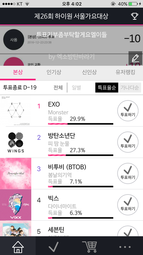 엑소가 일윈데 왜자꾸 어제부터 올라오는 사진은 아랫동네가 일위임ㅍ?