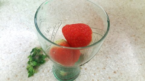 컵에 꼭지를 딴 딸기를 넣어주쎄용♡♡ 꼭지는버리지마세용 나중에 데코에쓸것~~^^