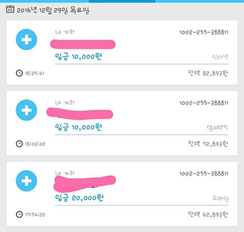 12월 29일 마지막 지수 생일 조공 입금현황입니다