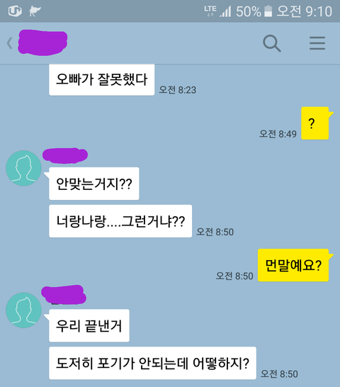 갑자기 왜 그러냐며 이유를 계속 물어보더군요..
