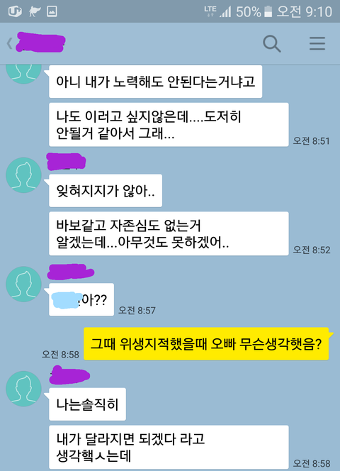그리고 ..전 여자친구들은 이런얘기 한적없거든. 걔네가 문제였을까..