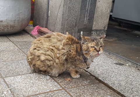 외관상 구내염이 의심되며 제대로 그루밍을 하지 못한채 잔반을 얻어 먹겠다며 기다리고 있는 모습을 지나칠수가 없었습니다.