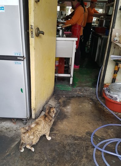 식당에서 밥을 구걸하던 한 길냥이를 만났습니다.