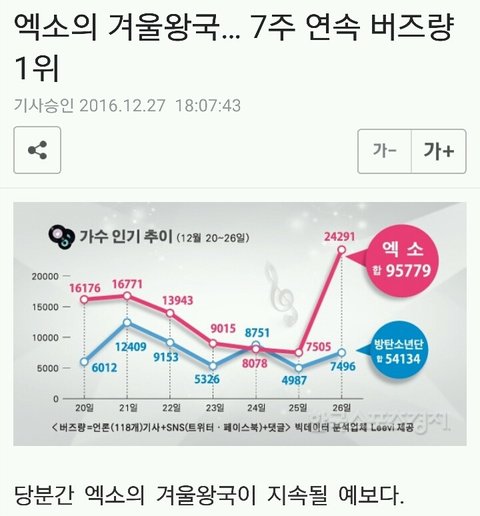 엑소의 겨울왕국… 7주 연속 버즈량 1위