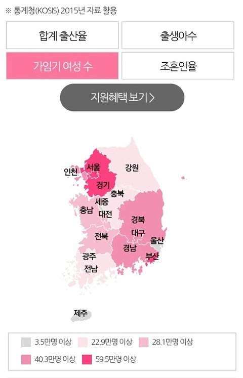 가임기 여성 수를 지역별로 보여줘서 순위까지 매겼네요