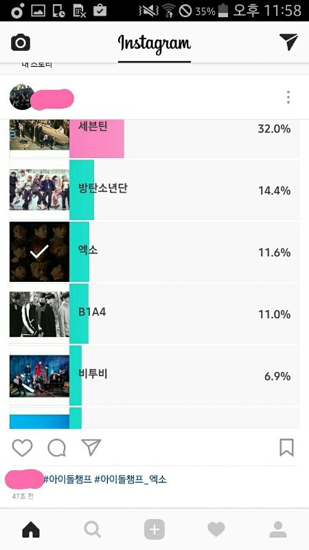 아이도루챔푸 깔아서 [내아이돌기부천사만들기] 투표하고 캡쳐해서 인별에 태그 저렇게 하서 올리면 됨 엑소 태그 게시물 보니까 50개 안 올라옴 ㄱㄱ