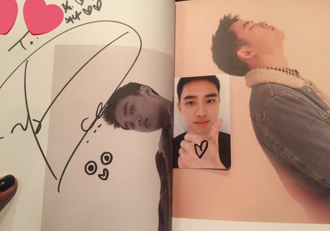 161230 아티움 경수 팬싸 경수한테 됴모티콘 ⊙♡⊙ 그려달라고했더니 아~이렇게 그리는거구나 지금까지 하트를 밑으로 그렸어요 했다 예쁘게 그려줬어 ( ͡ㅠ ͜ʖ ͡ㅠ)