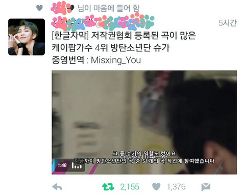 한국 저작권협회에 등록된 곡이 가장 많은 케이팝 가수 4위가 윤기래 문제시 빛삭!