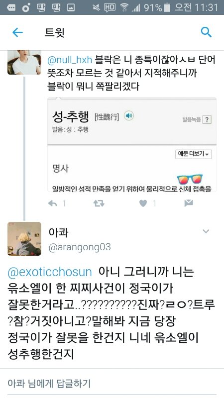 단어 뜻도 모른다 블락 그만해라는 멘션을 보냈는데 저딴 거지같은 답맨 옴ㅋㅋㅋㅋ