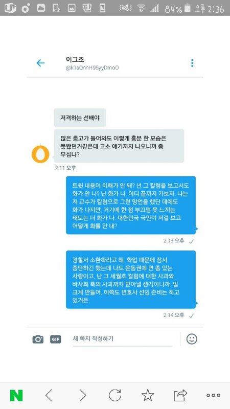 넌 그 칼럼을 보고서도 화가안나?. 지금은 학업때문에 중단했지만 나도 운동권에 연좀있는사람이고. ㅇㅈㄹ........대단하다