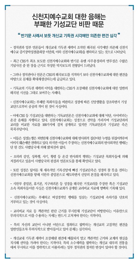 아직도 신천지예수교회에 대한 음해성 보도에 속고 계시나요?