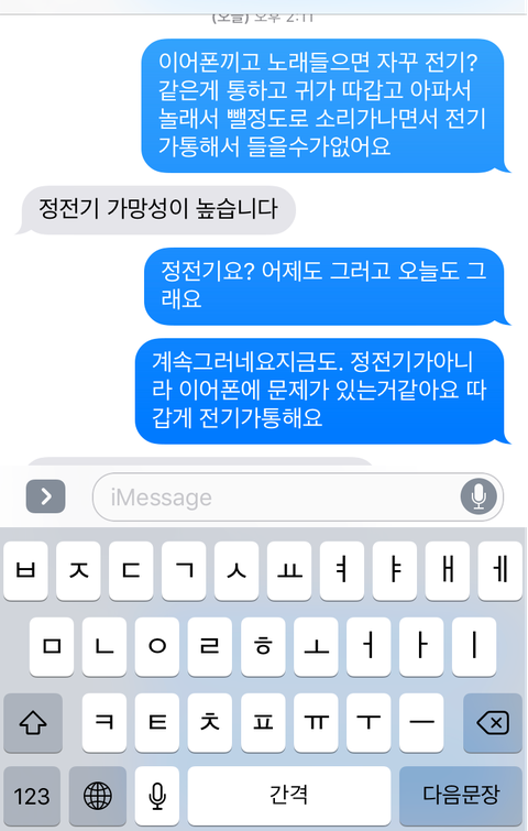 상담받으러 갔을땐 어케든 하나라도 팔아보겠다고 해줄수있는거 다 해줄기세였는데 개통하고나니 저렇게 말이 앞뒤가 달라질수있나요 이어폰에 문제가 있다하니 정전기라는 이상한 소리까지 합니다
