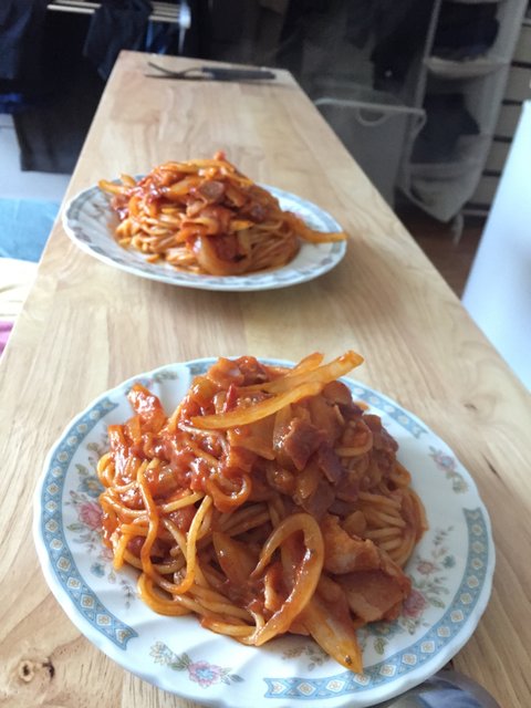 치킨 or 베이컨 or 소세지 + 양파는 토마토소스 스파게티에 꼭 넣는토핑 ㅋㅋㅋ